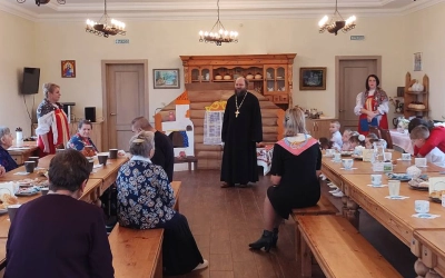 Затем состоялось чаепитие, в начале которого воспитатели угостили каждого кусочком настоящего русского каравая и выпечкой, приготовленной собственными руками. Атмосфера была такой дружелюбной, что никто не хотел расходиться. Малыши сели рядом с дедушками и бабушками, и это было очень по-домашнему. Конечно, сделали много фотографий на память.