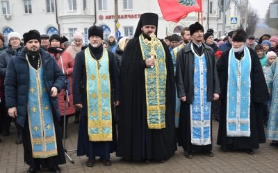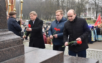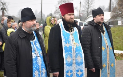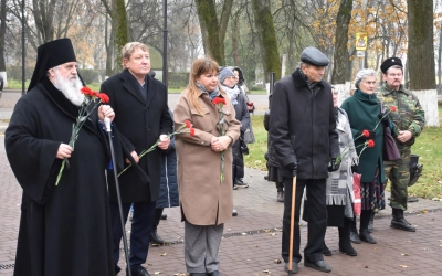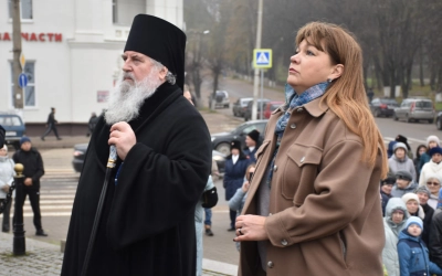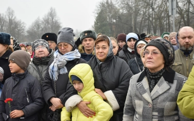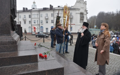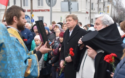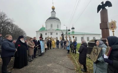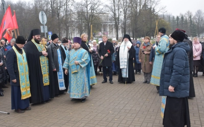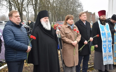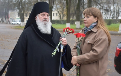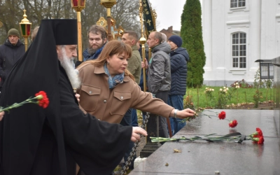 Со словами поздравлений к присутствующим обратились епископ Сергий и Инна Васильевна. Затем все молящиеся возложили цветы к монументу.