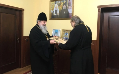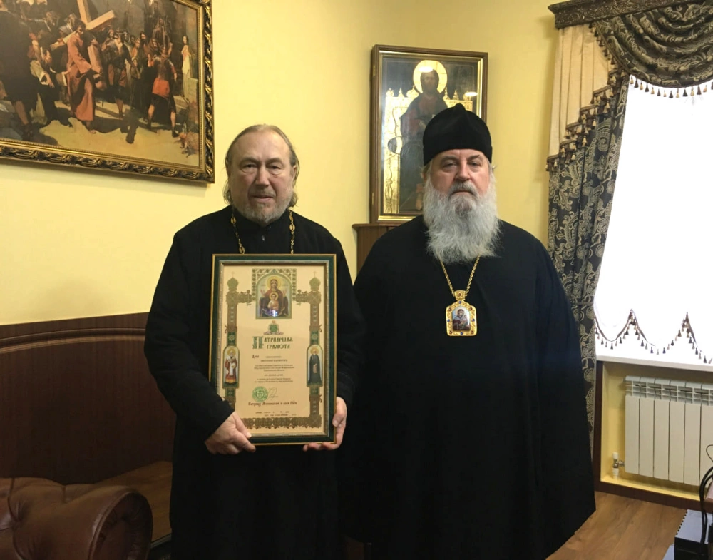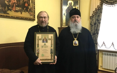 8 ноября 2023 года в рабочем кабинете правящего архиерея в Управлении Вяземской епархии состоялось награждение настоятеля Свято-Никольского храма пос. Холм-Жирковский Смоленской области протоиерея Евгения Баринова.