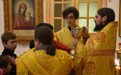 Его Преосвященству сослужили благочинный Угранского округа, настоятель Свято-Троицкого кафедрального собора иерей Александр Курмелёв и клирики собора: иерей Максим Мамонов и иеромонах Симеон (Берёзкин).