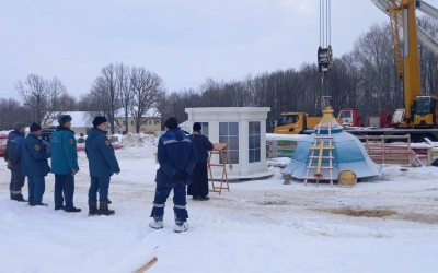 27 декабря 2023 года по благословению епископа Вяземского и Гагаринского Сергия в селе Дугино состоялось освящение купола и креста для строящегося храма в честь Троицы Живоначальной.