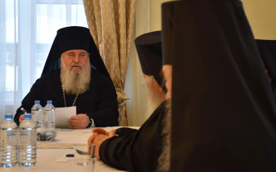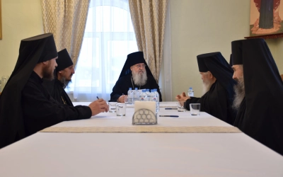 В заседании Духовного собора приняли участие наместник Свято-Владимирского монастыря игумен Тимофей (Ближенский) и братия святой обители.