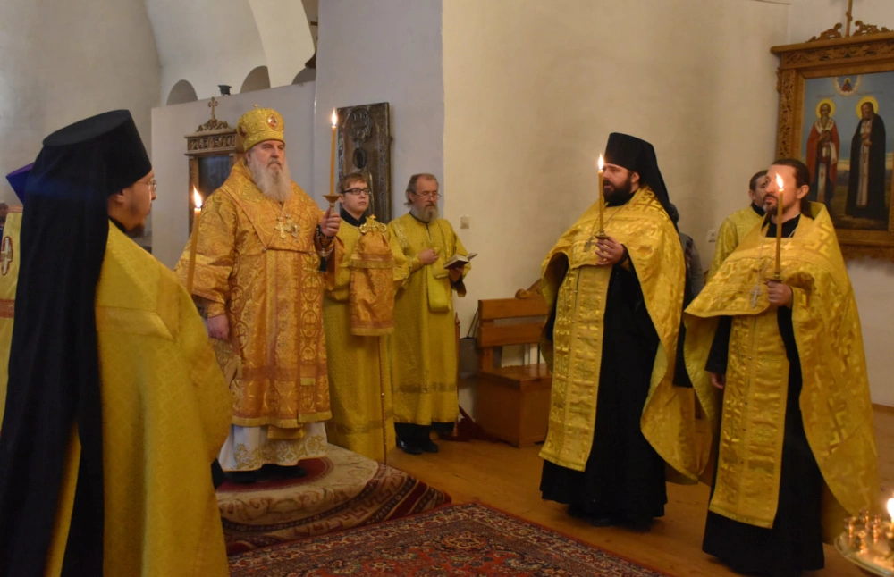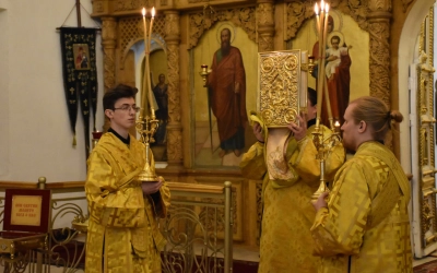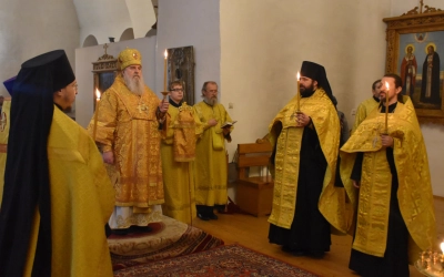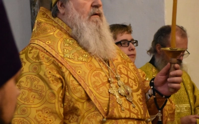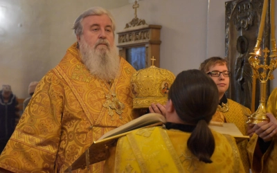 В продолжение Всенощного бдения Преосвященнейший Владыка Сергий совершил помазание освященным елеем и преподал архипастырское благословение духовенству и мирянам.