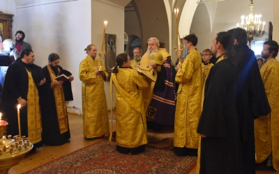 Богослужебные песнопения исполнил Архиерейский хор (регент — Елена Платонова).