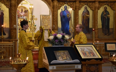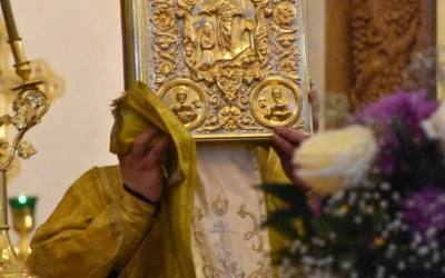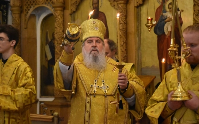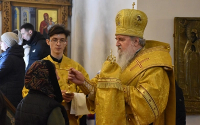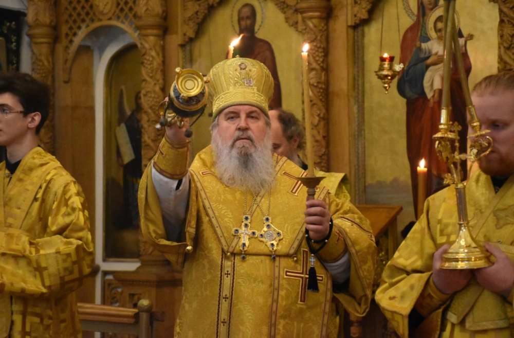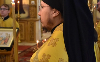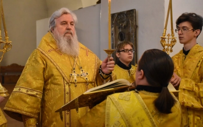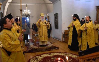 В продолжение Всенощного бдения Преосвященнейший Владыка Сергий совершил помазание освященным елеем и преподал архипастырское благословение духовенству и мирянам.