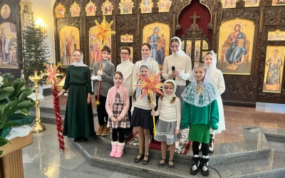По окончании богослужения к детям и их родным обратился отец Роман с назидательным словом. Воспитанники детской воскресной приходской группы рассказали стихотворения о Рождестве Христовом и пропели праздничные колядки.