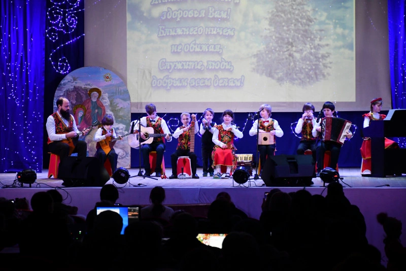 Хор Свято-Благовещенского храма торжественно открыл концерт, в исполнении которого прозвучали тропарь И. Ручкина, светилен Шевцова, кондак С. Трубачева, "В храме" сл.Т.Шороховой, муз. М. Шмельковой. Танцевальный коллектив "Валенки" исполнил первый класс.