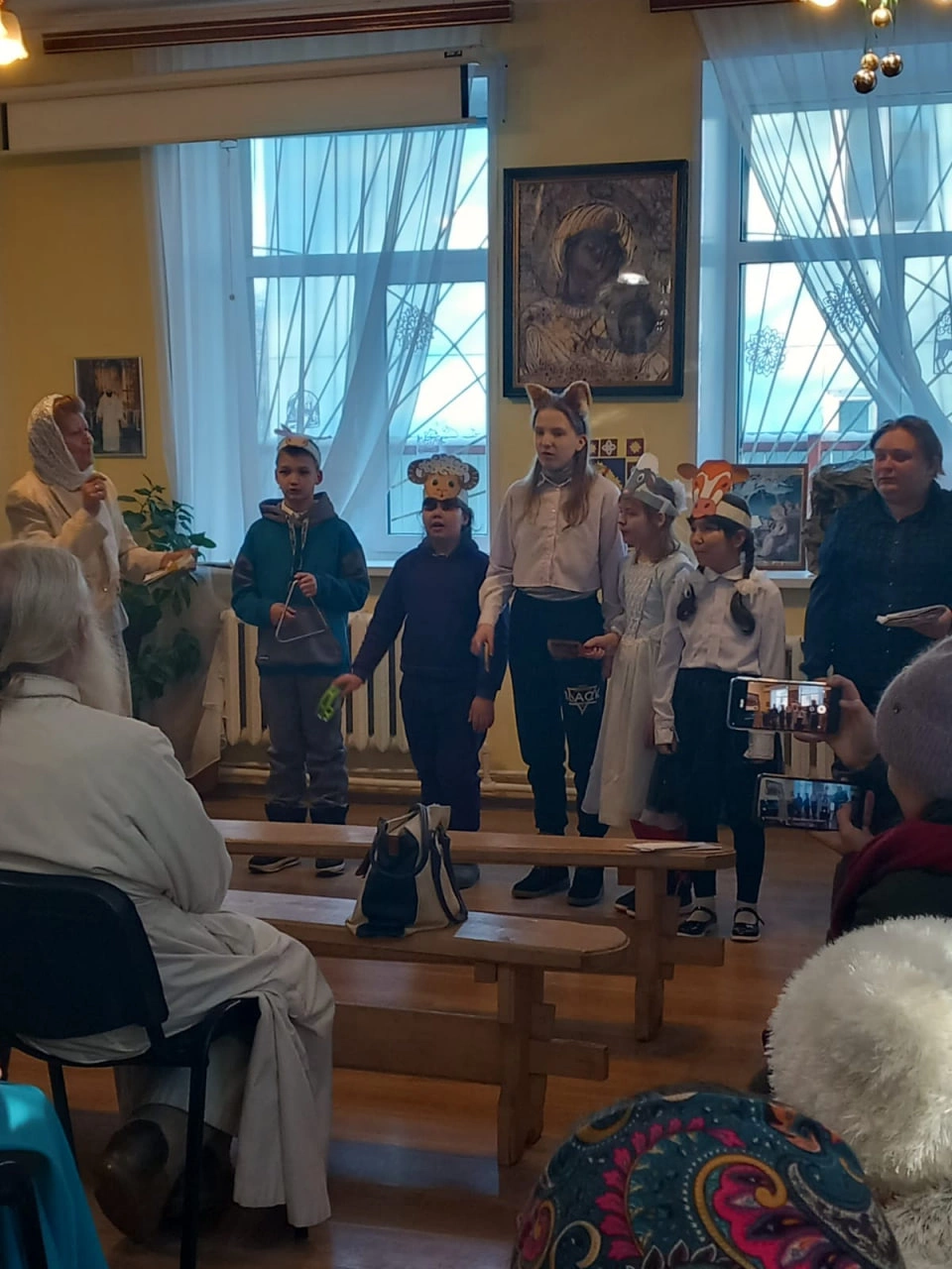 На елку пришли мамы и папы, дедушки и бабушки, прихожане и гости.