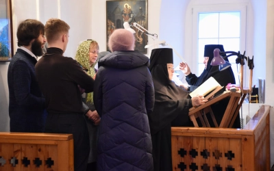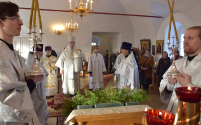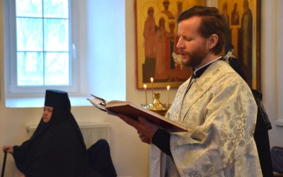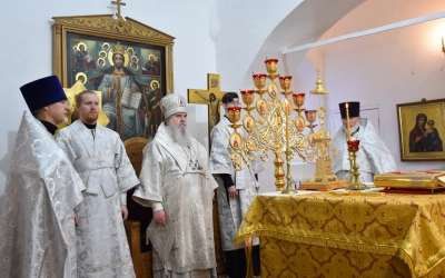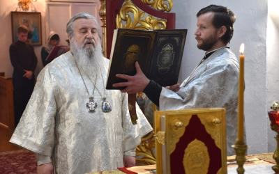 Его Преосвященству сослужили священники монастыря: протоиерей Николай Бабюк и иерей Владимир Покатов.