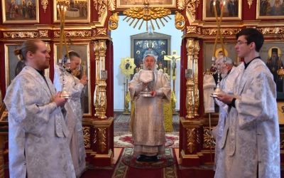 Во время Литургии, после сугубой ектинии, епископ Сергий вознес молитву о Святой Руси.