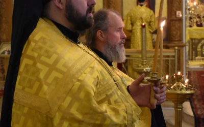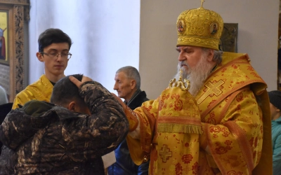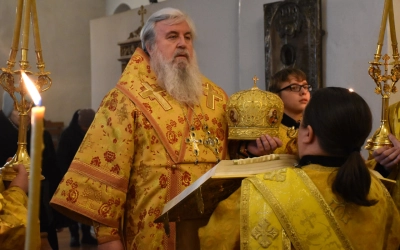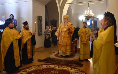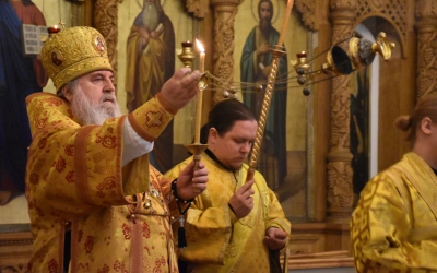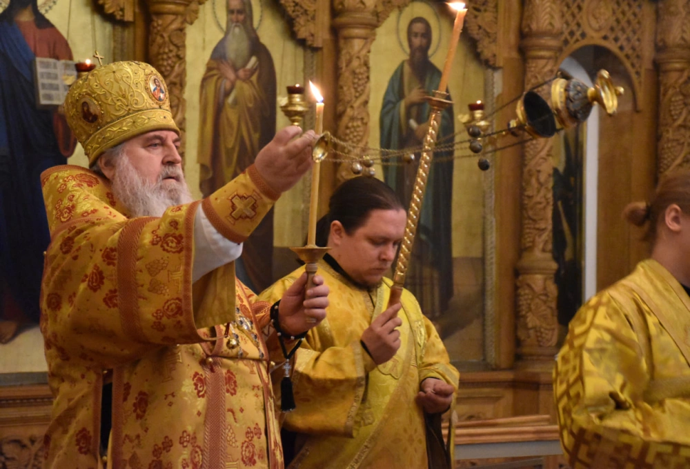 В продолжение Всенощного бдения Преосвященнейший Владыка Сергий совершил помазание освященным елеем и преподал архипастырское благословение духовенству и мирянам.