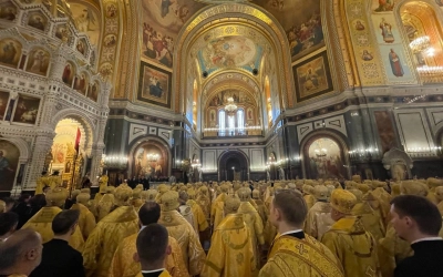 В этот знаменательный день Святейший Патриарх Кирилл совершил в интронизационных облачениях Божественную литургию в кафедральном соборном Храме Христа Спасителя в Москве.