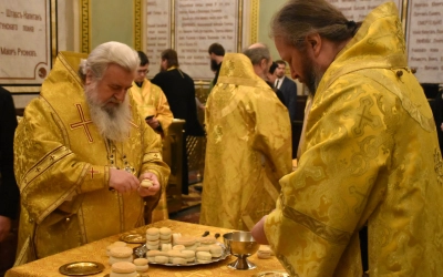 В богослужении участвовали представители Поместных Православных Церквей: митрополит Филиппопольский Нифон (Антиохийская Православная Церковь); архимандрит Серафим (Шемятовский) (Православная Церковь Чешских земель и Словакии); протоиерей Даниил Андреюк (Православная Церковь в Америке).