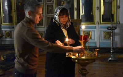 Почетных гостей приветствовал епископ Вяземский и Гагаринский Сергий, который провел для гостей экскурсию по кафедральному собору, где они смогли ознакомиться с историей собора и его святынями, помолиться и возжечь свечи.