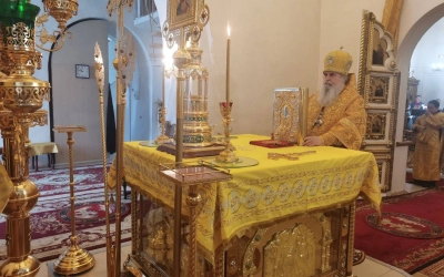 Преосвященнейшему Владыке сослужили клирики собора: иеромонах Симеон (Берёзкин) и иеромонах Дамиан (Попков), иерей Андрей Быков.