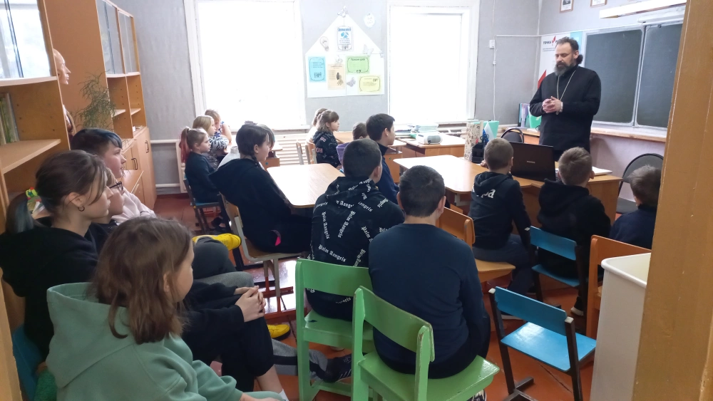 9 февраля 2024 года в основной школе деревни Власово Темкинского района состоялась беседа настоятеля храма в честь Пророка Божия Илии с.Тёмкино иерея Ростислава Суконченко с учащимися на тему семьи и семейных ценностей.