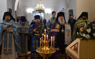 На сугубой ектении были вознесены особые прошения, Преосвященнейший Владыка вознес молитву о Святой Руси.