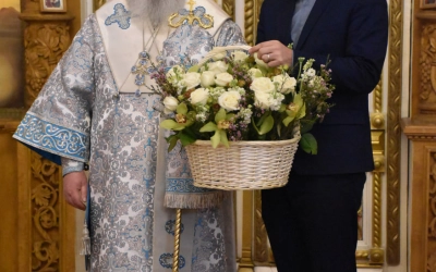 Затем с поздравительным словом в адрес Вяземского архипастыря по случаю его дня рождения обратилсь Петр Борисович Липатов, который передал епископу Вяземскому и Гагаринскому Сергию слова приветсвия и поздравления Губернатора Смоленской области Василия Николаевича Анохина, секретарь Вяземского епархиального управления протоиерей Олег Переверзев, Глава муниципального образования «Вяземский район» Смоленской области Инна Васильевна Демидова, представители городской Администрации, духовенство и прихожане собора.