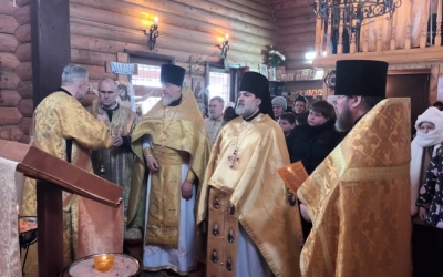 16 февраля 2024 года, в день памяти святителя Николая Японского, в храме в честь святителя Николая Японского д. Никольское Гагаринского района была совершена Божественная литургия по случаю престольного праздника, которую возглавил благочинный Гагаринского округа игумен Александр (Карпиков).