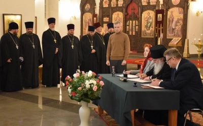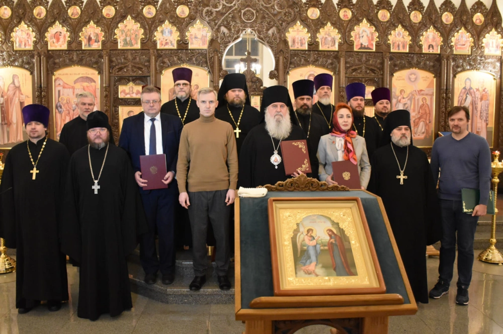28 февраля 2024 года в Благовещенском соборе города Гагарин состоялась церемония подписания договора о сотрудничестве между Вяземской епархией и администрациями Гагаринского и Темкинского районов Смоленской области.