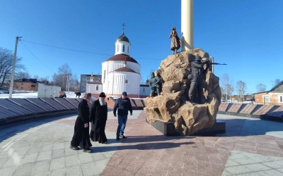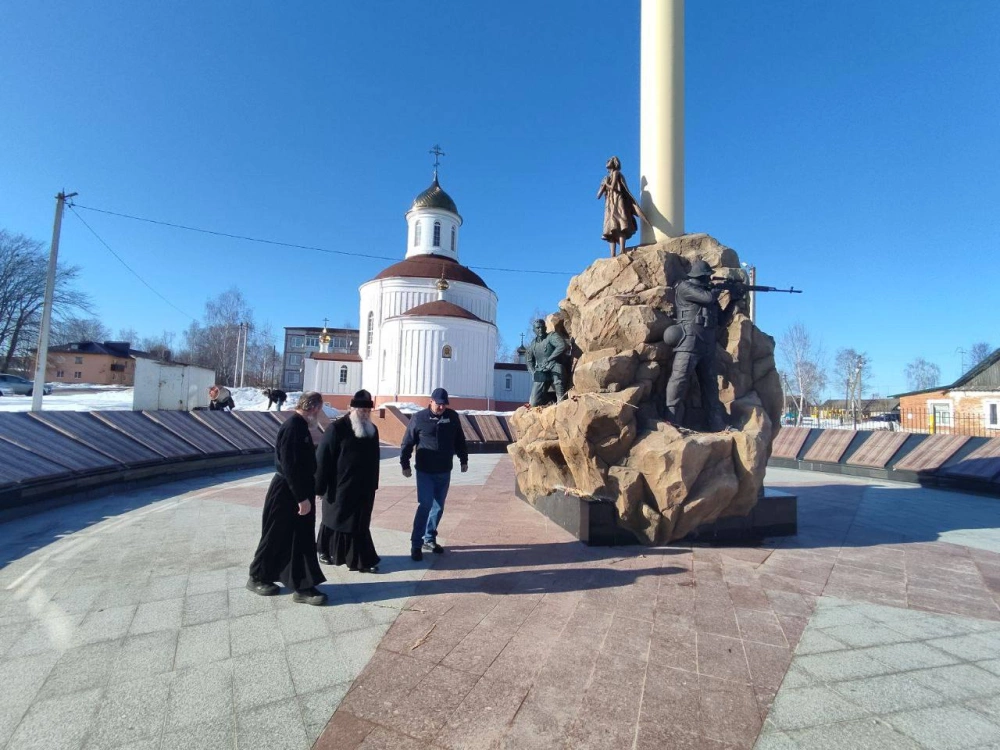 Возле мемориала, который располагается у Вознесенского храма, Игорь Васильевич рассказал епископу Сергию об увековечивании памяти вождей и воинов, погибших в Афганистане.