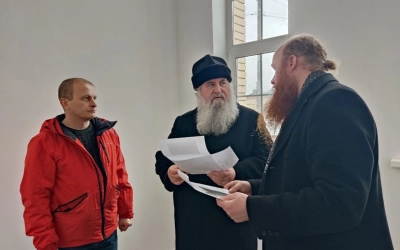 В ходе рабочего визита епископ Сергий осмотрел храм и обсудил основные вопросы его строительства на данном этапе.