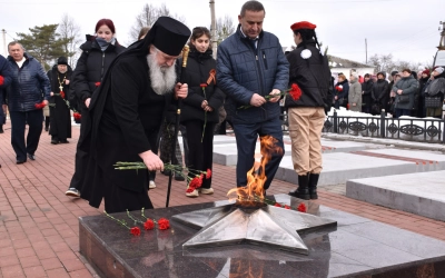 В завершение мероприятия участники митинга возложили цветы к Вечному огню.