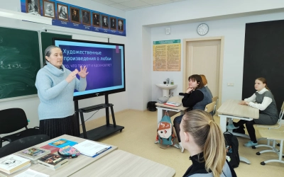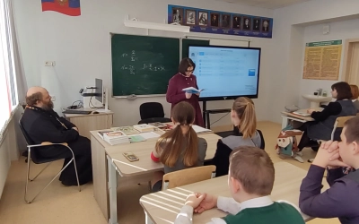 Отец Иоанн показал презентацию и рассказал о святых супругах Святой Руси. Разговор о литературе и о книгах продолжили матушка Лидия и Мария Жданова, представившая презентацию с обзором добрых и важных фильмов, литературных произведений и выставку книг. Мария прочитала стихотворения собственного сочинения, посвященные семье и идеалу мужа и жены, а также познакомила старшеклассников с произведениями любимой поэтессы Марии Чебан, жены священника и молодой мамы.