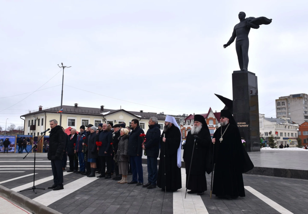 По окончании праздничной Божественной литургии в Казанском храме г. Гагарин торжества предварил памятный митинг на главной площади города возле памятника Юрия Алексеевича.