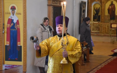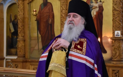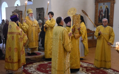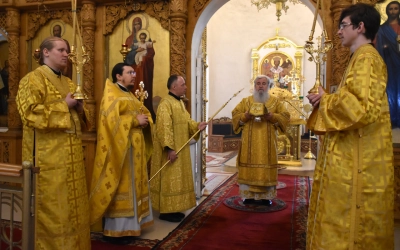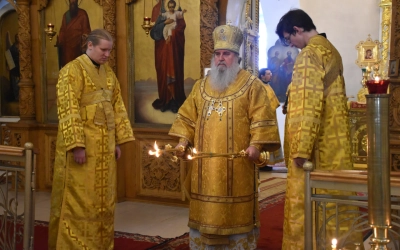 На сугубой ектении были прочитаны особые прошения, Преосвященнейший Владыка вознес молитву о Святой Руси.