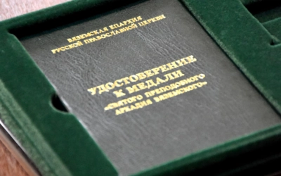Медаль в честь преподобного Аркадия Вяземского III степени была вручена епископом Вяземским и Гагаринским Сергием.