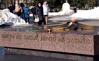 В знак глубокого уважения участники мероприятия почтили память павших защитников Отечества Минутой молчания, возложили венки и цветы к Вечному Огню, а также к памятнику генералу-лейтенанту М.И. Ефремову.