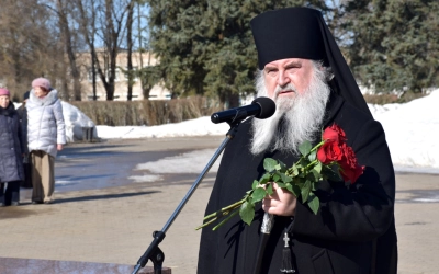 Преосвященнейший Владыка обратился к участникам памятного мероприятия с Архипастырским словом, в котором отметил значимость подвига и величайшее мужество воинов, партизан и тружеников тыла в годы Великой Отечественной войны. В своем слове Архипастырь также обратил внимание присутствующих на самоотверженный подвиг участников Специальной военной операции, которые сегодня защищают наше Отечество.