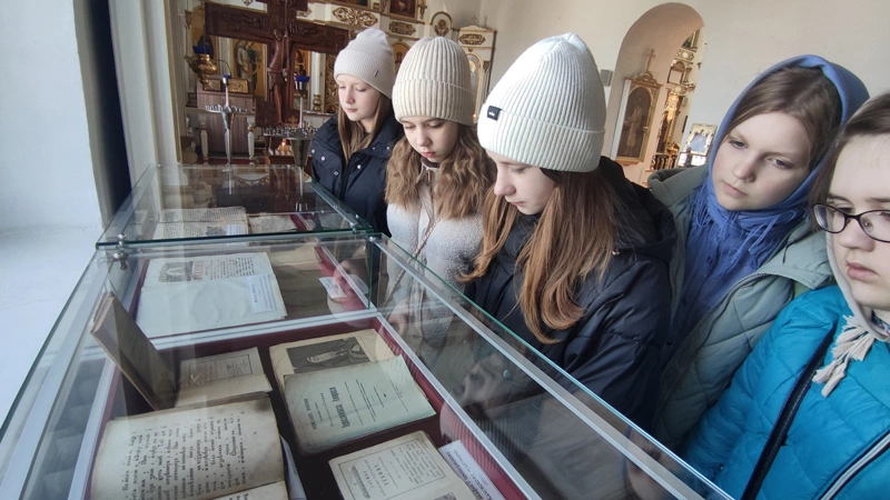 Экскурсанты познакомились с образцами старинных книг - экспонатов постоянно действующей выставки в Введенской церкви.