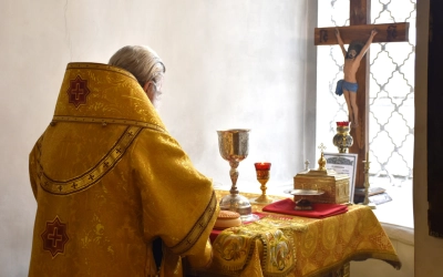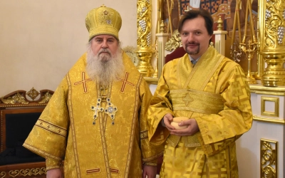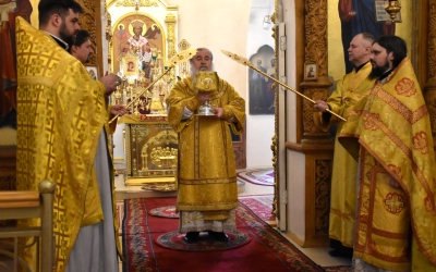 На сугубой ектении были прочитаны особые прошения, Преосвященнейший Владыка вознес молитву о Святой Руси.