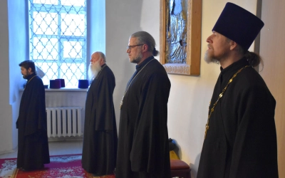 В алтаре молились секретарь Вяземского епархиального управления протоиерей Олег Переверзев, благочинный Угранского округа, настоятель Свято-Троицкого кафедрального собора иерей Александр Курмелёв, благочинный Вяземского городского округа протоиерей Валерий Калинин, духовенство Вяземского городского благочиния.