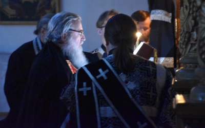 По окончании Великой вечерни правящий архиерей возглавил особое коленопреклонное моление и первым испросил прощения у собравшихся клириков и прихожан. Затем испросили друг у друга прощения Вяземское городское духовенство и миряне — по очереди подойдя к Владыке Сергию, они приложились к Кресту и попросили благословения на совершение Великого поста.