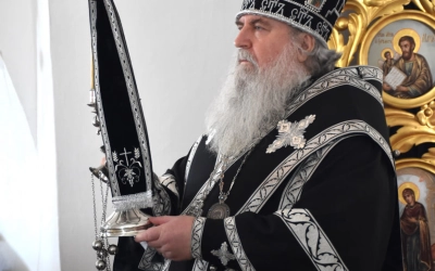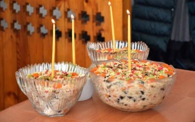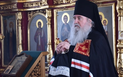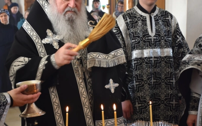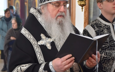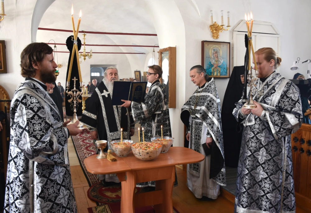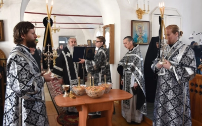 По заамвонной молитве епископ Сергий возглавил молебный канон великомученику Феодору Тирону и благословил коливо, а затем обратился к молящимся с архипастырским словом.