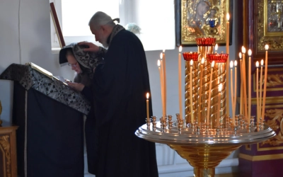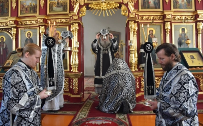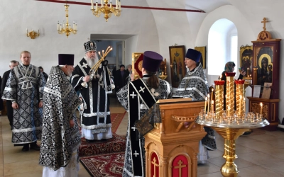 Покаянное предстояние перед Господом с архипастырем и духовенством разделили настоятельница монастыря игумения Лаврентия (Павлюченкова) с сестрами святой обители, гости и прихожане монастыря.