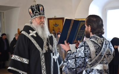 Вяземскому архипастырю сослужили священники монастыря: протоиерей Николай Бабюк и иерей Владимир Покатов.