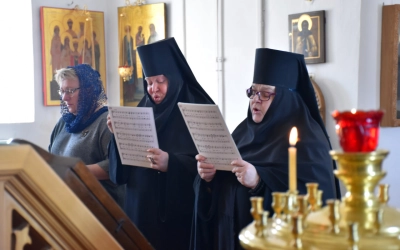 Молитвенные песнопения исполнил хор Иоанно-Предтеченского монастыря.