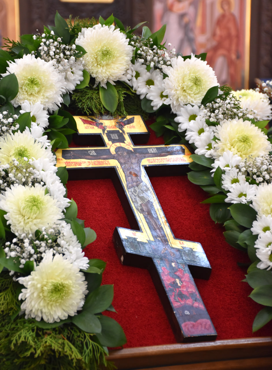 По заамвонной молитве был совершен Крестный ход, а также славление двунадесятому празднику и поклонение Честному и Животворящему Кресту Господню.