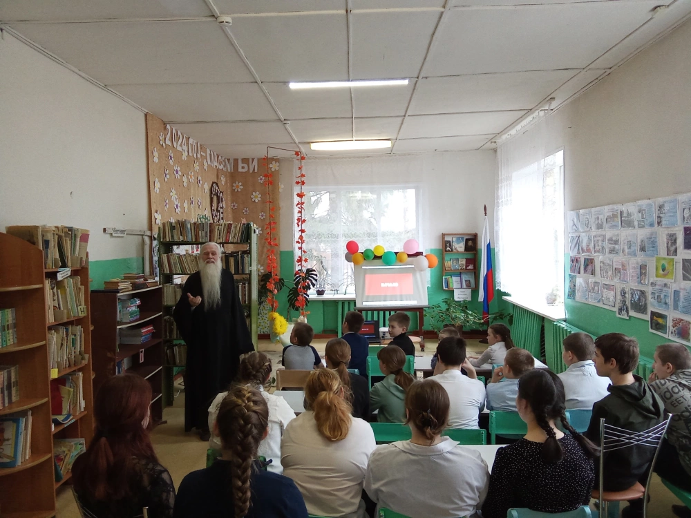 4 апреля 2024 года благочинный Сычевского округа протоиерей Анатолий Чайкин провел беседу со школьниками в Караваевской общеобразовательной школе.