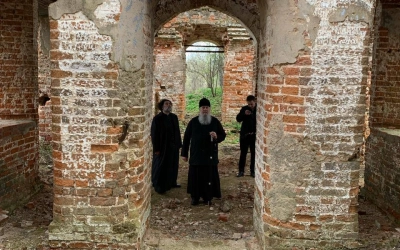 12 апреля 2024 года епископ Вяземский и Гагаринский Сергий посетил с рабочим визитом руинированный храм в честь Святителя Николая Чудотворца д. Потапово Гагаринского района Смоленской области.