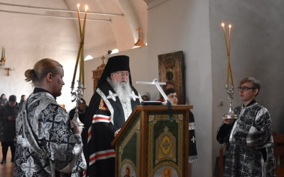 17 апреля 2024 года, в канун четверга 5-й седмицы Великого поста, епископ Вяземский и Гагаринский Сергий совершил утреню с чтением Великого покаянного канона преподобного Андрея Критского («стояние Марии Египетской») в Свято-Троицком кафедральном соборе г. Вязьмы.