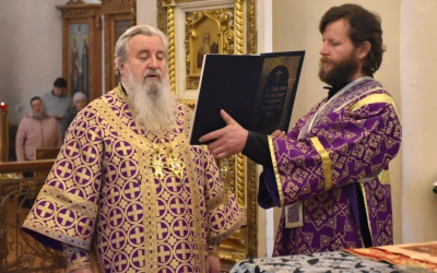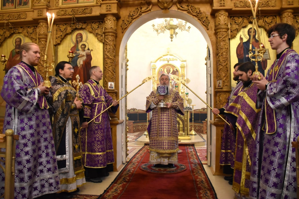 В завершении Божественной литургии Преосвященнейший Владыка обратился к молящимся с архипастырским словом, в котором рассуждал над подвижнеческой жизнью преподобной Марии Египетской.