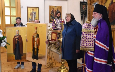 Также с приветственным словом обратилась Надежда Алексеевна Король, супруга, почившего в Бозе 24 января 2024 года директора Вяземского завода синтетических продуктов Владимира Петровича Короля. Обращаясь к архипастырю и всем присутствующим, Надежда Алексеевна рассказала о своем муже, и согласно его завещанию передала в дар Спасо-Аркадиевскому архиерейскому монастырскому подворью г. Вязьма иконы святителя Николая Чудотворца и святой Анны Пророчицы. Владыка Сергий сердечно поблагодарил Надежду Алексеевну, а также отметил, что в Спасо-Аркадиевской обители за каждым богослужением будет совершаться молитва за раба Божия Владимира.