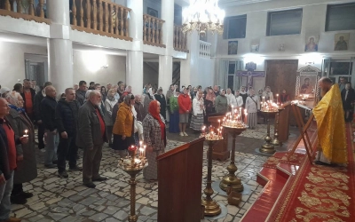 Во время пасхальной службы в храм Рождества Христова была доставилена частица благодатного огня, который сошел в храме Гроба Господня в Иерусалиме.