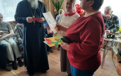 Приход поздравил и вручил трём сельским школам и Дому престарелых 90 подарков и 70 шоколадок.