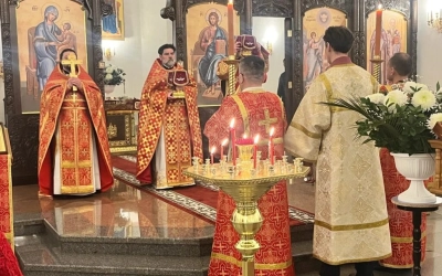 Его Высокопреподобию сослужили клирики собора: иерей Роман Ступа и диакон Димитрий Прусов.